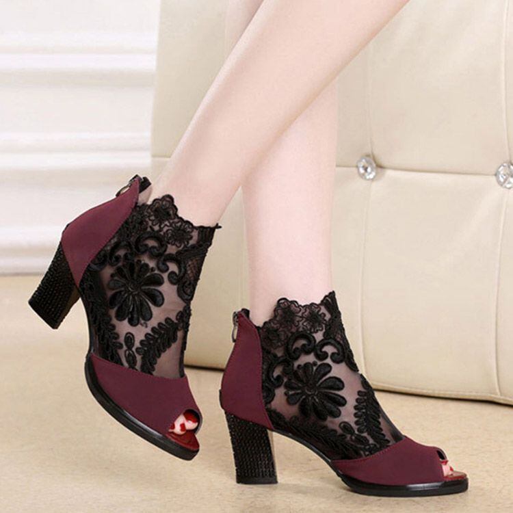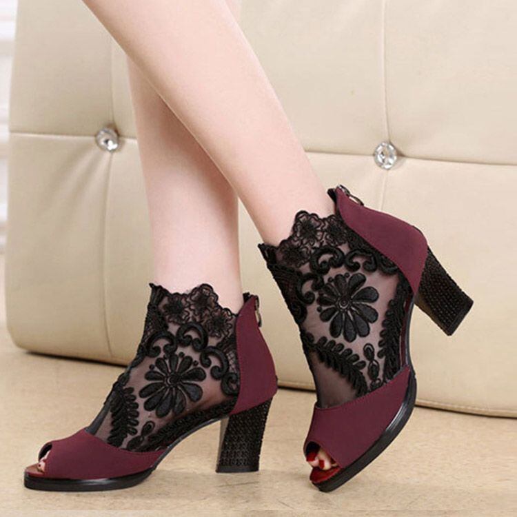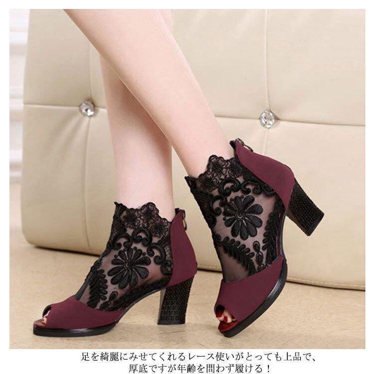 新品 サマーブーツ レディース ブーツサンダル 春ブーツ 夏ブーツ メッシュレース 美脚サンダル ハイヒール 靴 ブーツ シースルー 透かし フラワーレース 花柄 切り替え オープントゥ サンダルブーツ kkkqcd | オキナ商店