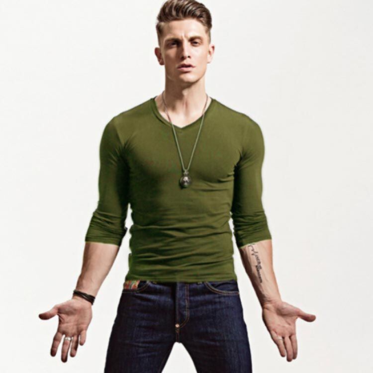 スリムフィット長袖インナーtシャツ。Vネック&Uネックの2タイプあり!