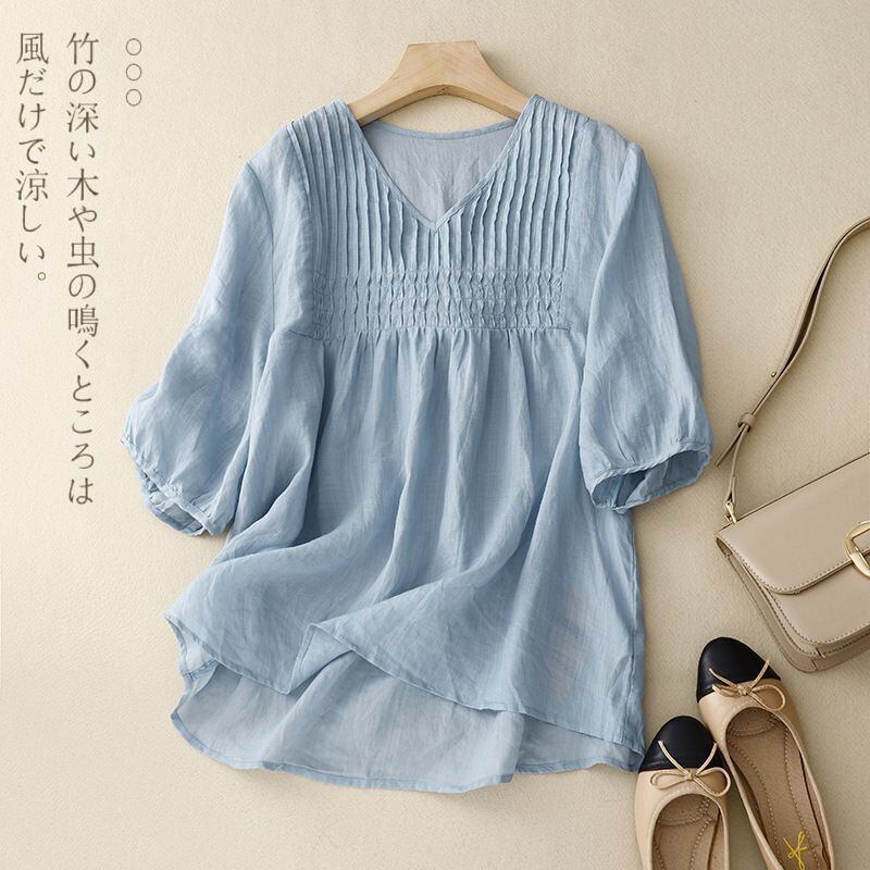 新品 綿麻シャツ レディース 綿麻 7分袖 無地 体型カバー 着痩せ お洒落 トップス 大きいサイズ ゆったり シンプル 薄手 トップス tシャツ カジュアル 春 夏 秋 旅行 リゾート トップス おしゃれ kkkegw | オキナ商店