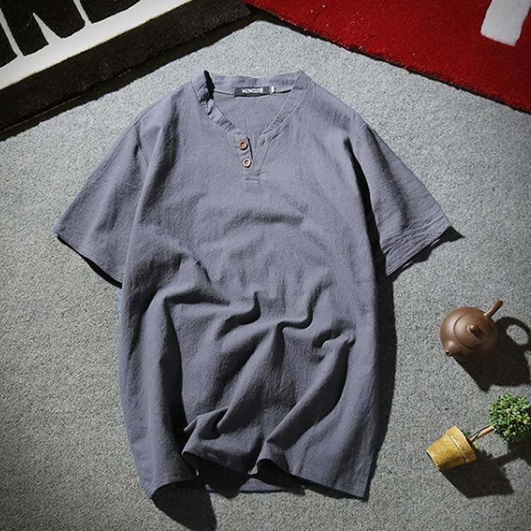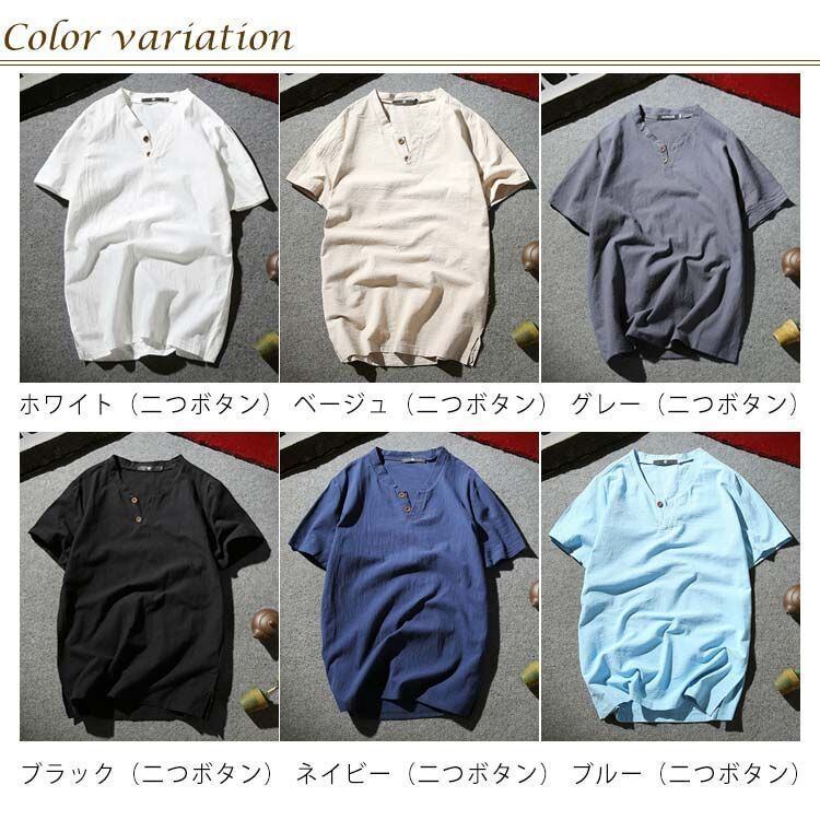 新品 Tシャツ メンズ 半袖シャツ リネンシャツ 通気性 綿麻シャツ Vネック リネンシャツ 夏 ヘンリーネック 麻 リネンTシャツ 綿麻 おしゃれ トップス Vネック ボタン 部屋着 ルームウェア リネン kkkrrt | オキナ商店