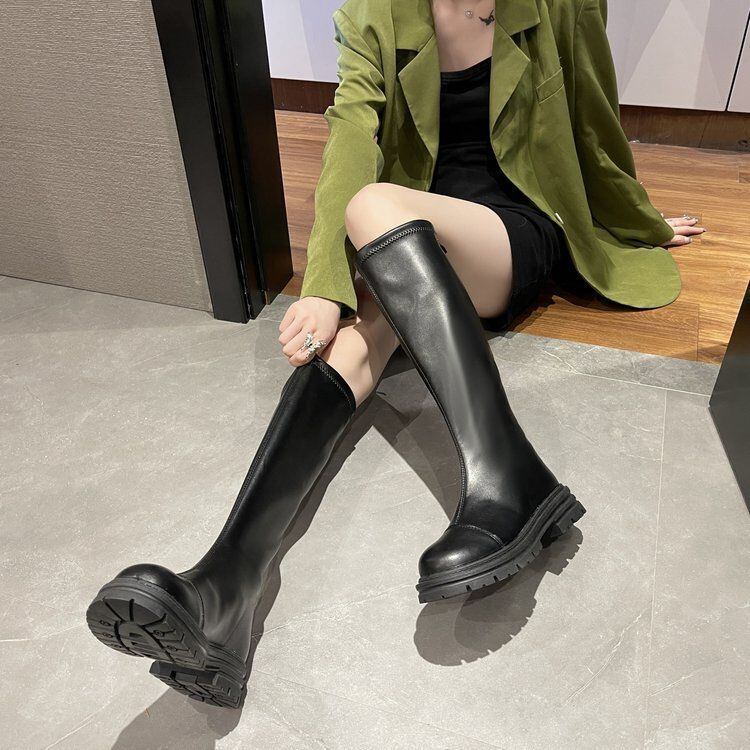 新品 ジョッキーブーツ ニーハイブーツ ロングブーツ レディース 膝丈 レディース ブーツ 靴 美脚 4CM ローヒール 太ヒール カジュアル シンプル ブーツ 痛くない ゆったり スムース 細見せ 秋冬 疲れにくい kkknvp | オキナ商店