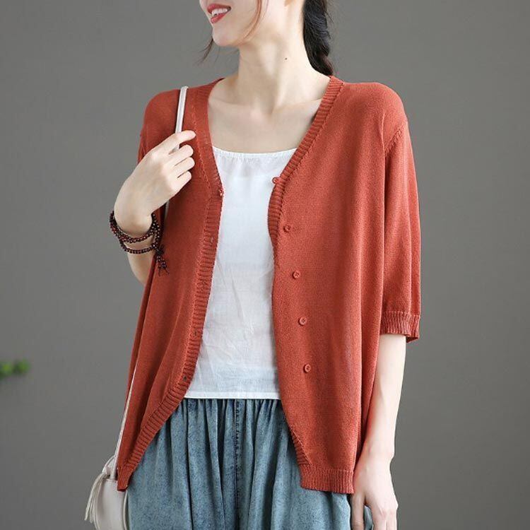 新品 UVカット レディース 春 カーディガン ニット 薄手 トップス オフィス 冷房対策 5分袖 接触冷感 アウター ニットカーディガン サマーカーディガン 七分袖 夏 洗える 春夏秋 ゆったり 羽織り kkklba | オキナ商店
