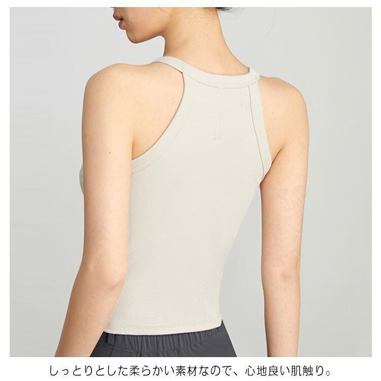 1枚で着れる カップ付 ホルターネックタンクトップ