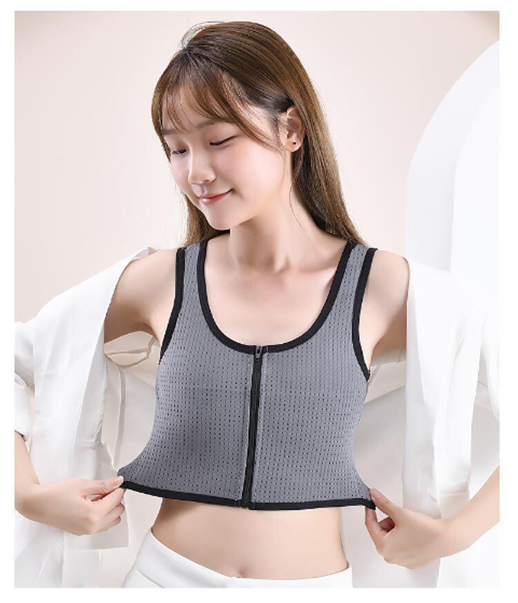 通気性に優れたメッシュ素材を使用。苦しくなりにくく、胸を押さえても快適に過ごすことが可能です。