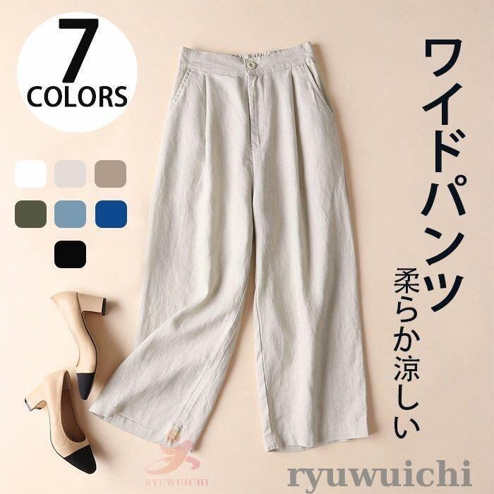 新品 ワイドパンツ レディース ウエストゴム ゆったり ボトムス 薄手 体型カバー 亜麻 麻混 八分丈 九分丈パンツ ガウチョパンツ ズボン 春夏秋 低身長 小さいサイズ kkkesi | オキナ商店