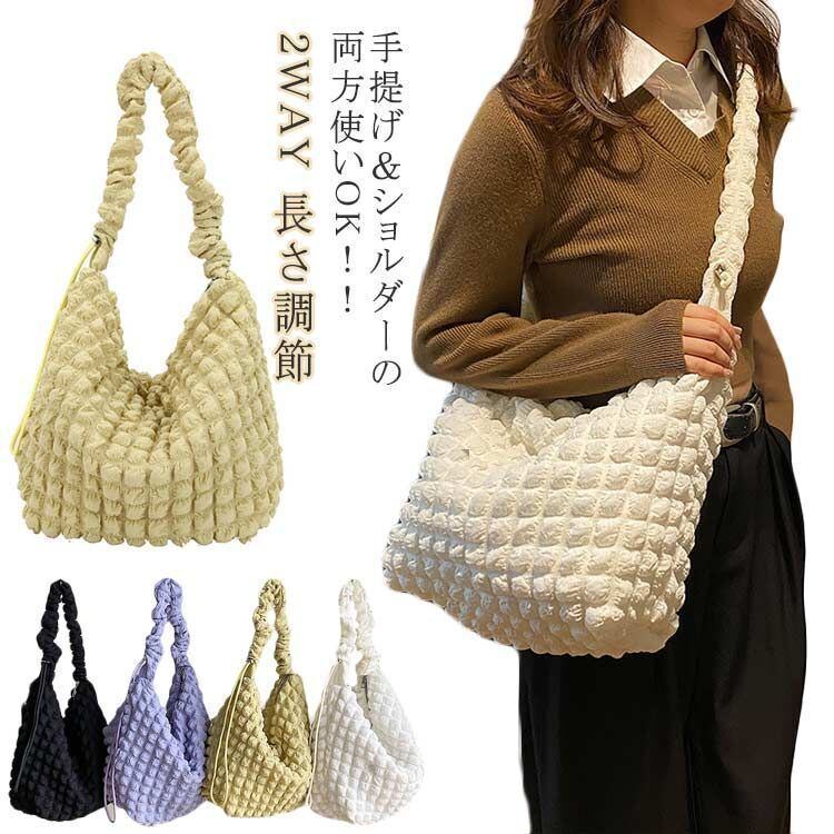 新品 ポップコーンバッグ ギャザーショルダー ショルダーバッグ ハンドバッグ 2WAY 斜め掛けバッグ 長さ調節 レディース かわいい おしゃれ 通勤 通学 軽量 ポコポコ ぽこぽこ トート シャーリング kkknve | オキナ商店