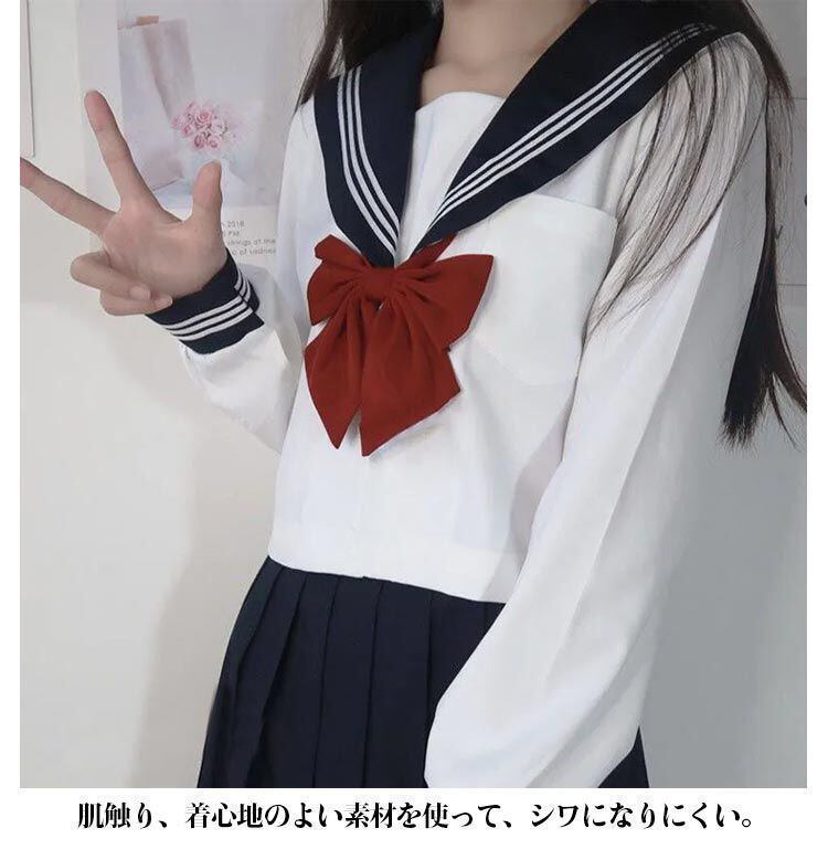 新品 セーラー服 制服 コスプレ 学生服 スカート リボン 衣装 仮装 長袖 上下セット 女子制服 JK制服 高校生 4点セット 可愛い レディース 大きいサイズ 女子学生 女子高生 中学生 学園祭 大人 kkkgoo | オキナ商店