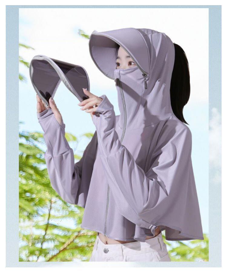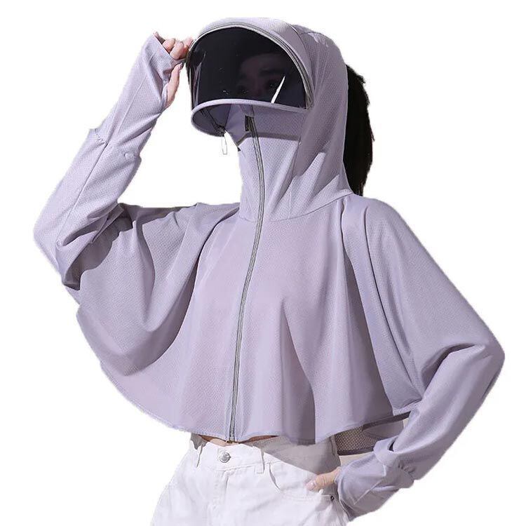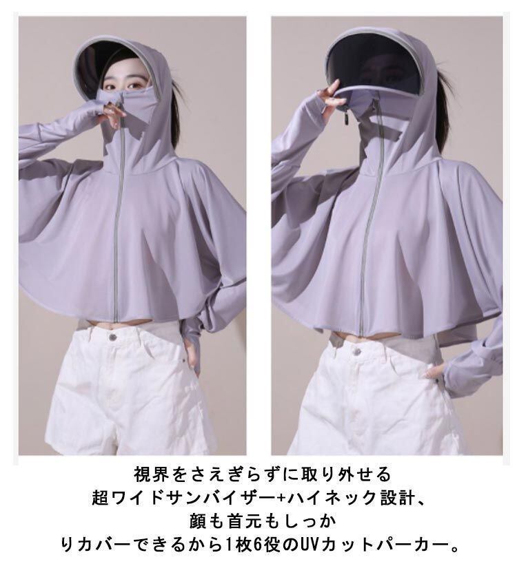 新品 UVカット サンバイザー付き レディース ラッシュガード 大きいサイズ フード付き ケープ ポンチョ ゴルフ 長袖 涼しい マント パーカー 吸湿速乾 日焼け止め UPF50+ 指穴 紫外線対策 kkknbq | オキナ商店