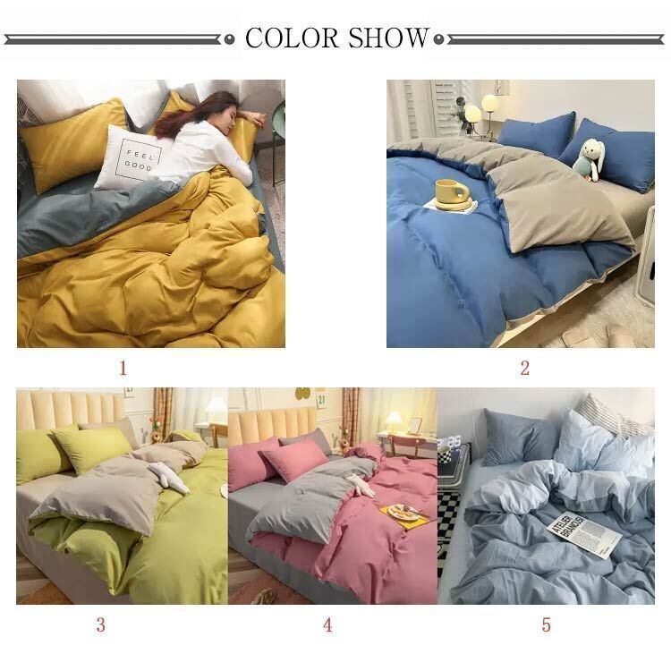 サイズについての説明:掛け布団カバー:150cmX200cm フラットシーツ:160cmX230cm 枕カバー:48cmX74cmX1枚