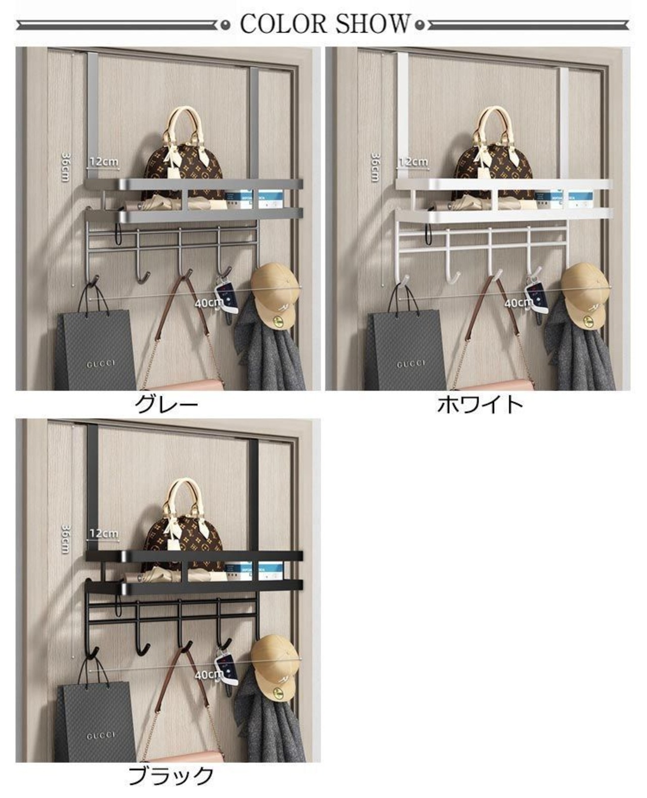 ・バッグや衣類を一緒に掛けておけるので、探す手間が省けて便利です。