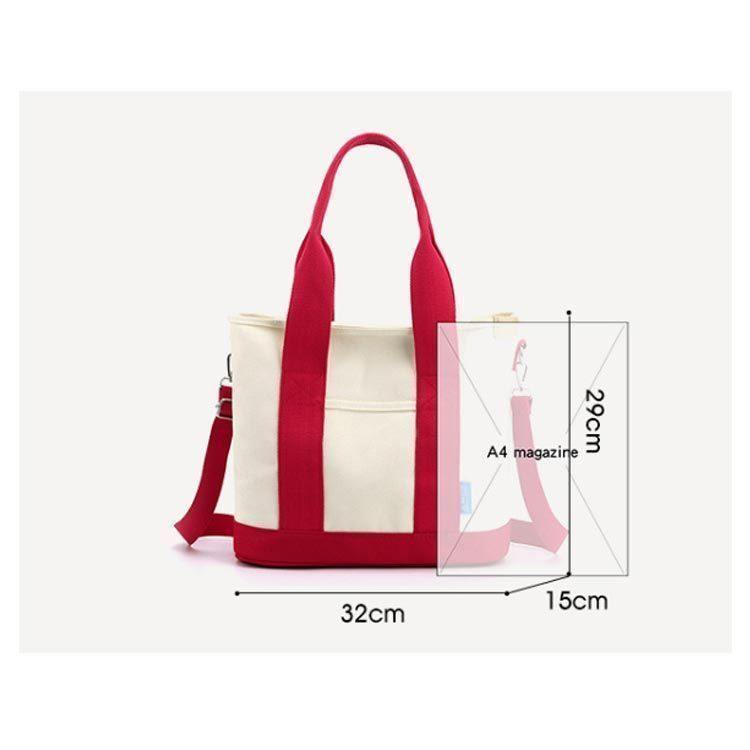 新品 整理整頓 ファスナー開閉 キャンバス トートバッグ 便利 横型 無地 大容量 2way 手提げバッグ A4 レディース 仕切り 斜め掛け 通勤 通学 カジュアル 配色 キャンバストート kkkzdh | オキナ商店