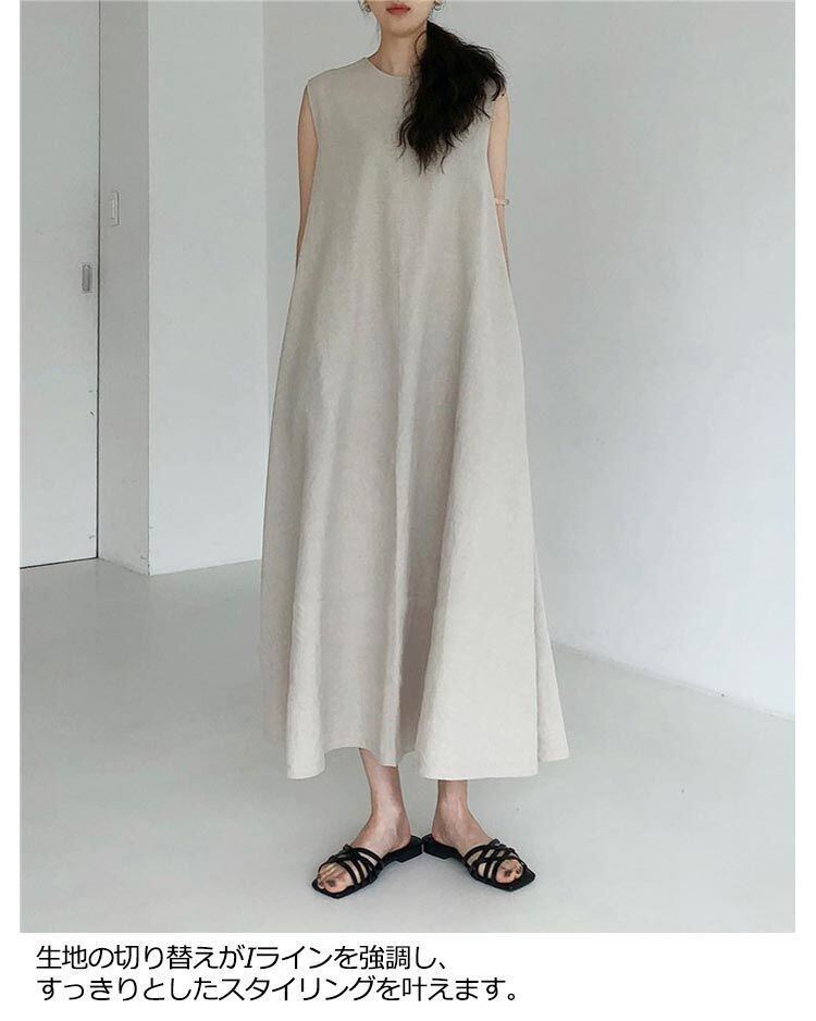 さらっと1枚でコーディネートが完成する、大人のノースリーブワンピースです。
