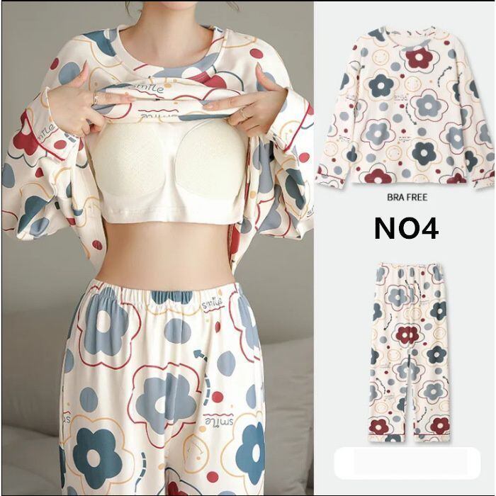 パジャマ レディース 長袖 ルームウェア カップ付き ナイトウェア ロングパンツ 春 夏 秋 冬 寝間着 ナイトウエア 着心地 部屋着 入院 産後 xyxzy129