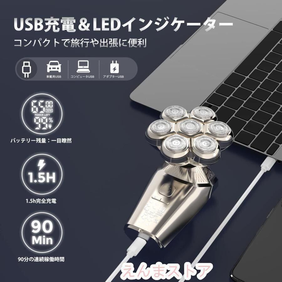 電気シェーバー 7D 磁気インターフェース式 スキンヘッド用 バリカン ひげそり 電動 メンズシェーバー USB充電