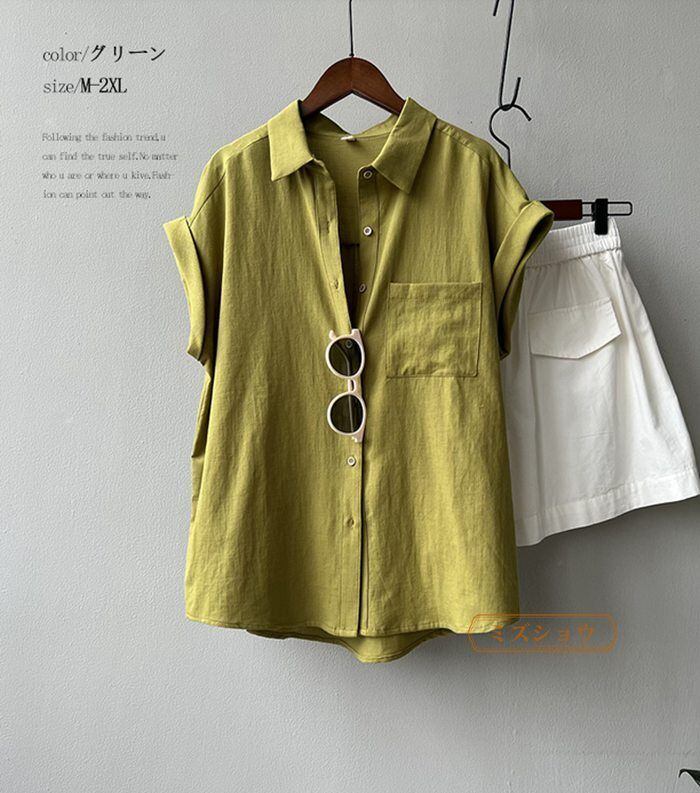 新品 シャツ 襟付き ブラウス レディース フレンチスリーブ ロールアップ仕様 ワイシャツ 半袖 フォーマル 通勤 オフィス シャツ 衿付き カジュアル ロールアップスリーブ スタイルアップ 薄手 羽織り 夏 大人 OL kkkyhn