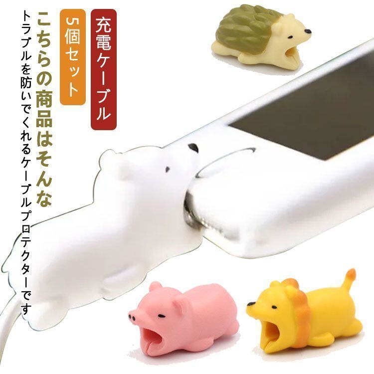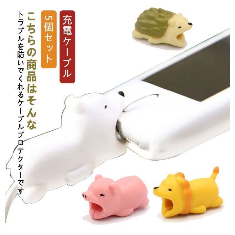 新品 ケーブル用プロテクター 断線防止 5個セット アニマルプロテクター 保護カバー iPhone 充電ケーブル 保護 ケーブルバイト カバー アンドロイド ライトニングケーブル対応 動物 USB Typ kkkhew