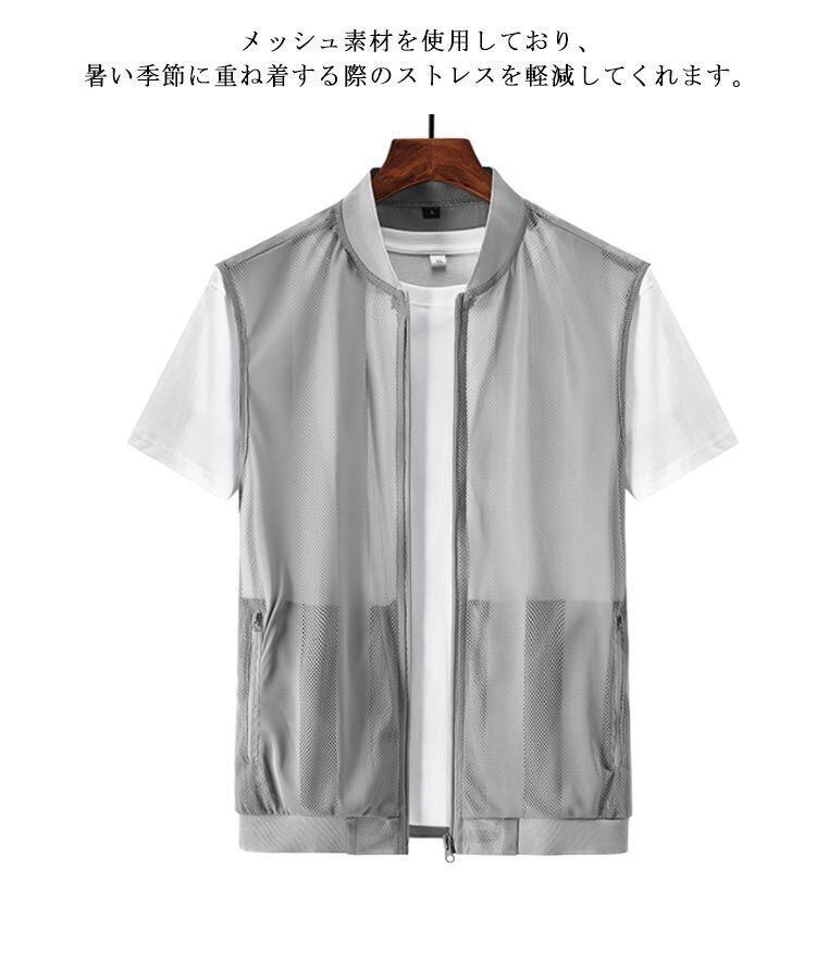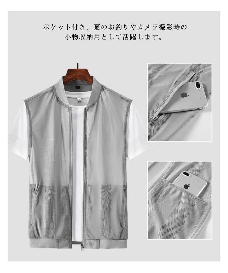 新品 メッシュベスト 多機能ベスト メンズ 夏ベスト 薄手 メッシュジレ 前開き ジャケット 羽織り 上着 ノースリーブ 涼しい 速乾 通気性 ポケット付き ノースリーブ 透け感 サマーベスト スポーツベス kkkncq