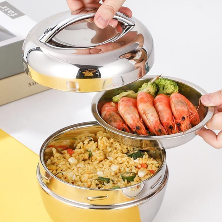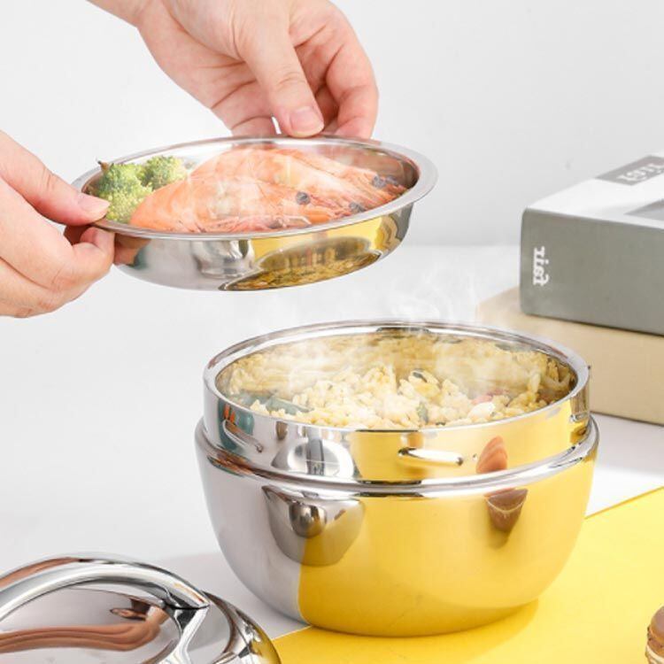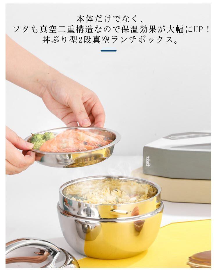 本体だけでなく、フタも真空二重構造なので保温効果が大幅にUP!丼ぶり型2段真空ランチボックス。