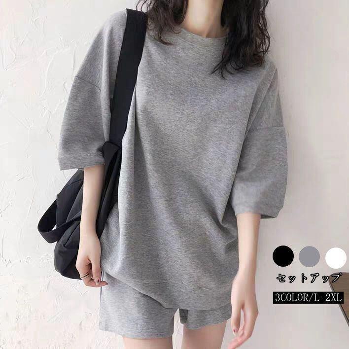 新品 上下セット セットアップ ゆったり Tシャツ ショートパンツ ルームウェア 部屋着 スポーツウェア 涼しい 夏 kkkbep