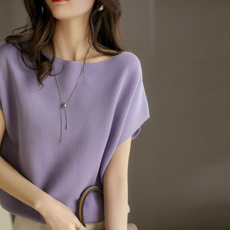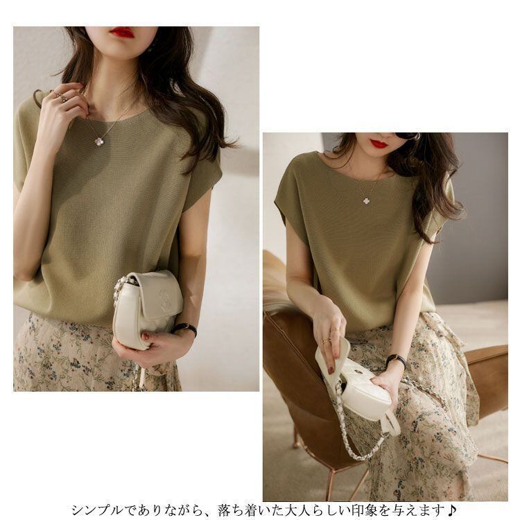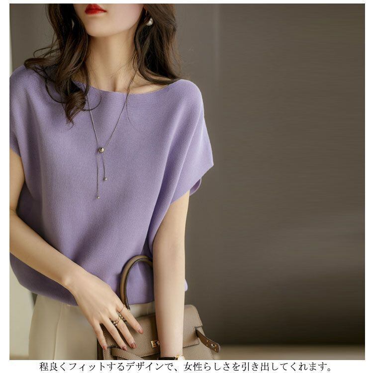 新品 Tシャツ ニット レディース ドルマンTシャツ サマーニット ニットTシャツ 半袖 インナー ゆったり ラウンドネック シンプル 無地 お洒落 カジュアル 大人 こなれ感 トップス プルオーバ kkklgy