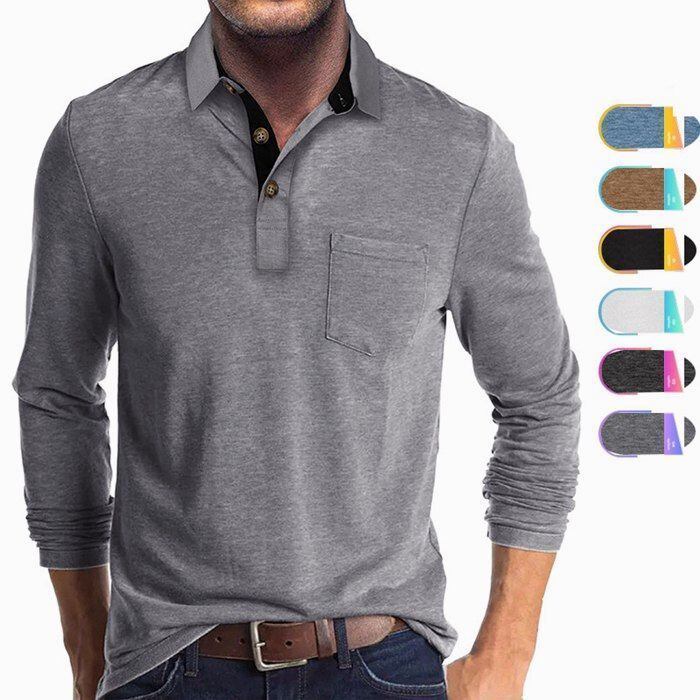 新品 メンズポロシャツ 長袖 シャツ 無地 ゴルフシャツ 長袖ポロシャツ ポロ トップス 胸ポケット付き 通勤 通学 おしゃれ kkkklt