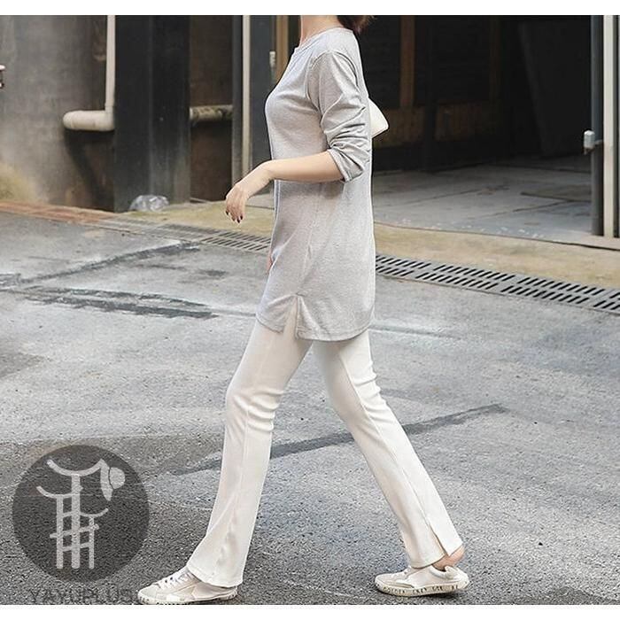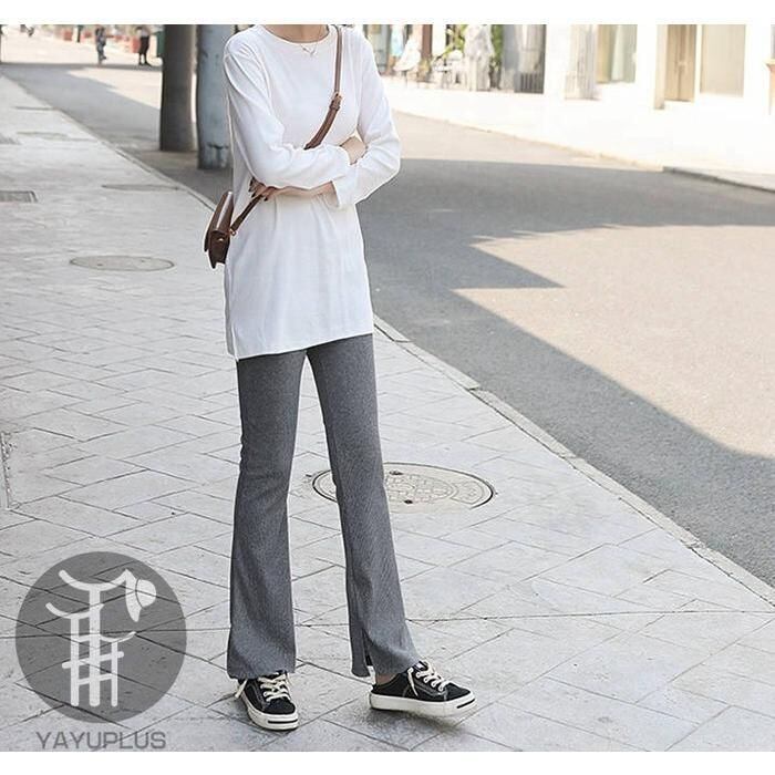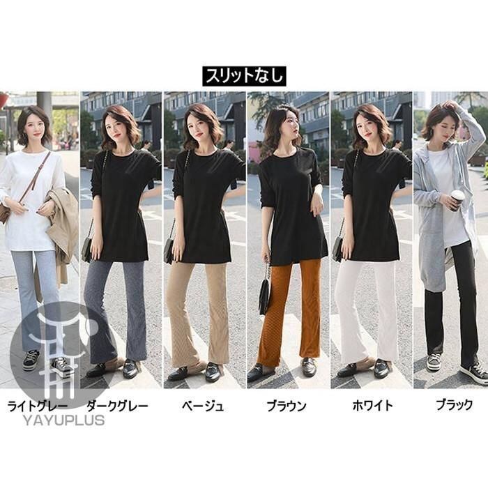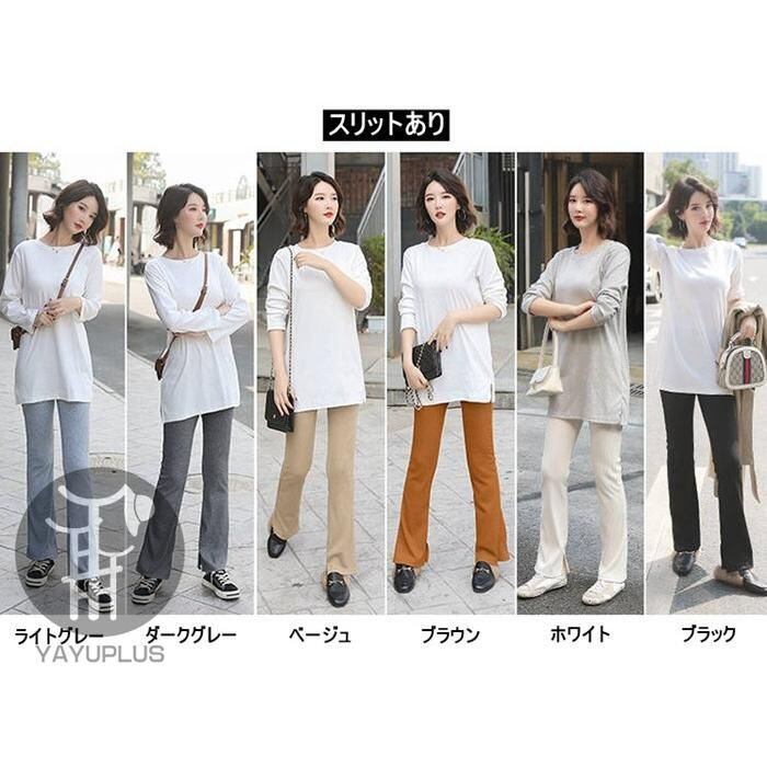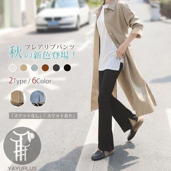 新品 フレアリブパンツ リブレギンス レディース リブ スリット スキニー ボトムス ロングパンツ kkktyb