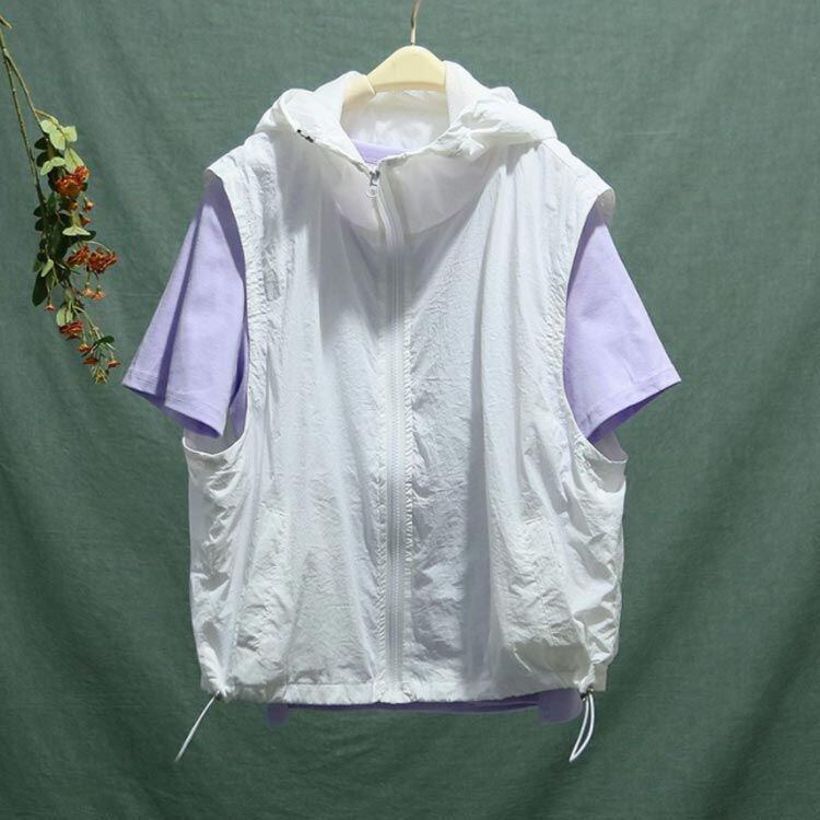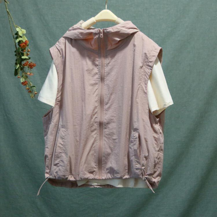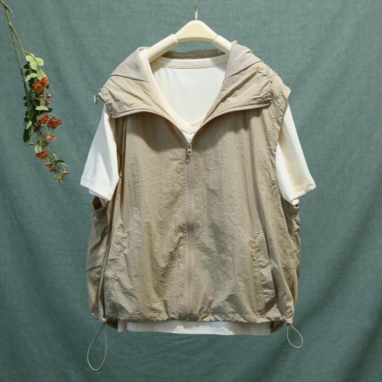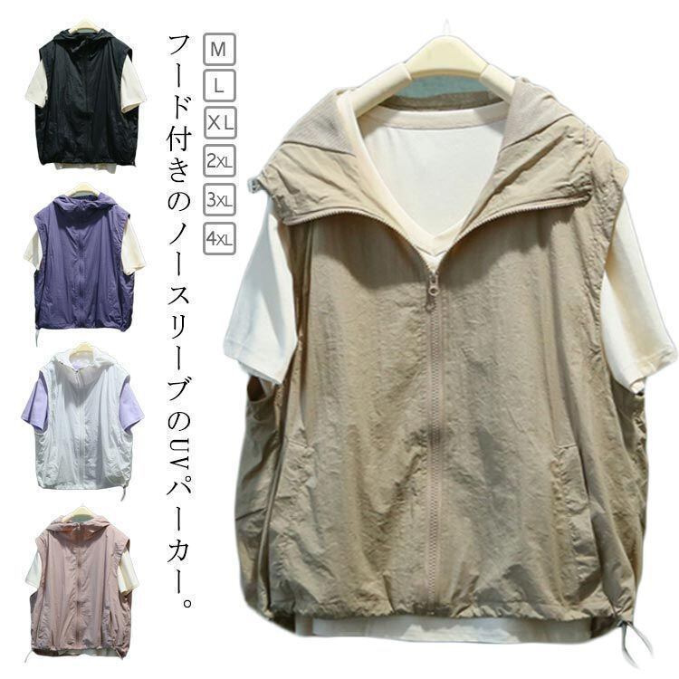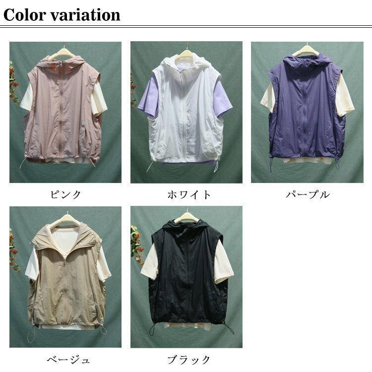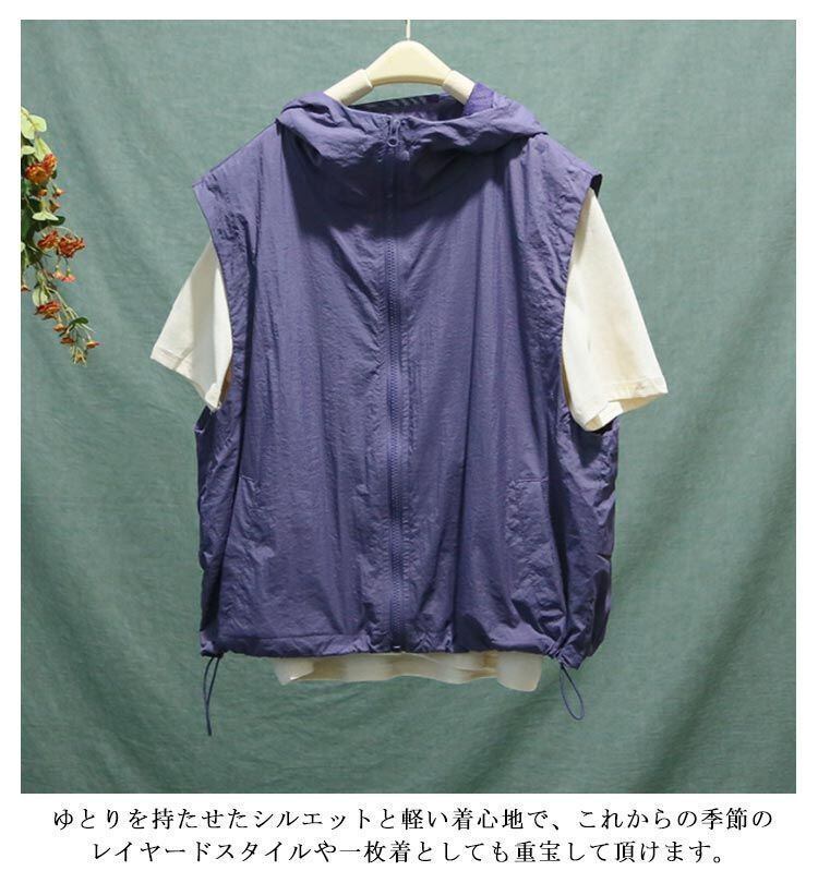 新品 ベスト ジレ レディース トップス パーカー アウター ノースリーブ 重ね着 レイヤード ジャケット 薄手 前開き 無地 羽織り ライトアウター フード付き 春 夏 大人 着回し 涼しい ひんやり U kkkkzz
