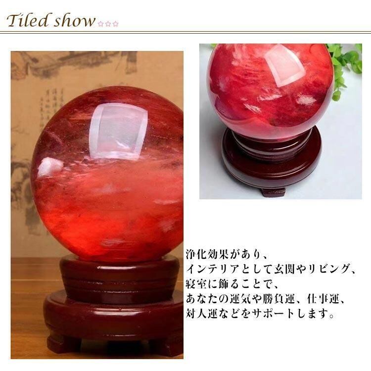 新品 パワーストーン 縁起物 瞑想 水晶玉 レッド 風水 水晶ボール 10CM 天然石英赤のスメルティングストーン レッドクリスタルボール 木製台座 ブラケ kkkfcq