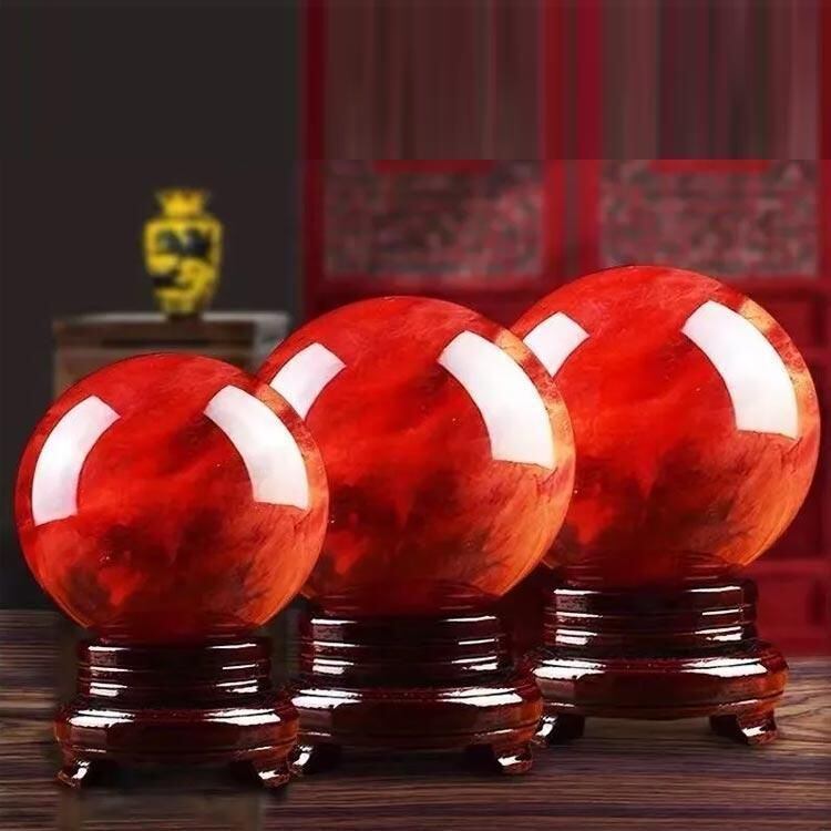 この赤い水晶玉は、風水的なパワーを取り入れつつ、インテリアとしても魅力的です。