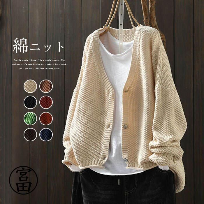 新品 ニットカーディガン レディース 長袖 コットンニットカーディガン カーディガン ニットカーディガン ニット ゆるカーディガン ニットカーデ 羽織り 春 秋 羽織り kkkefw
