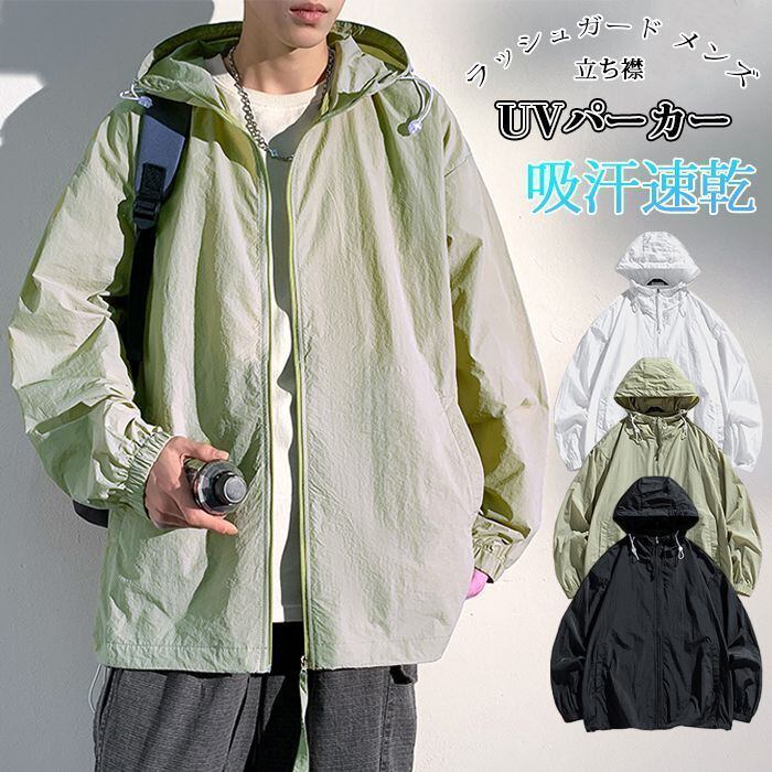新品 ラッシュガード メンズ UVパーカー 未使用 ジップアップ Vカット 立ち襟 スタンドカラー 体型カバー 長袖 春夏 涼しい 吸汗速乾 水陸両用 軽量 コンパクト スイムウエア kkkqym