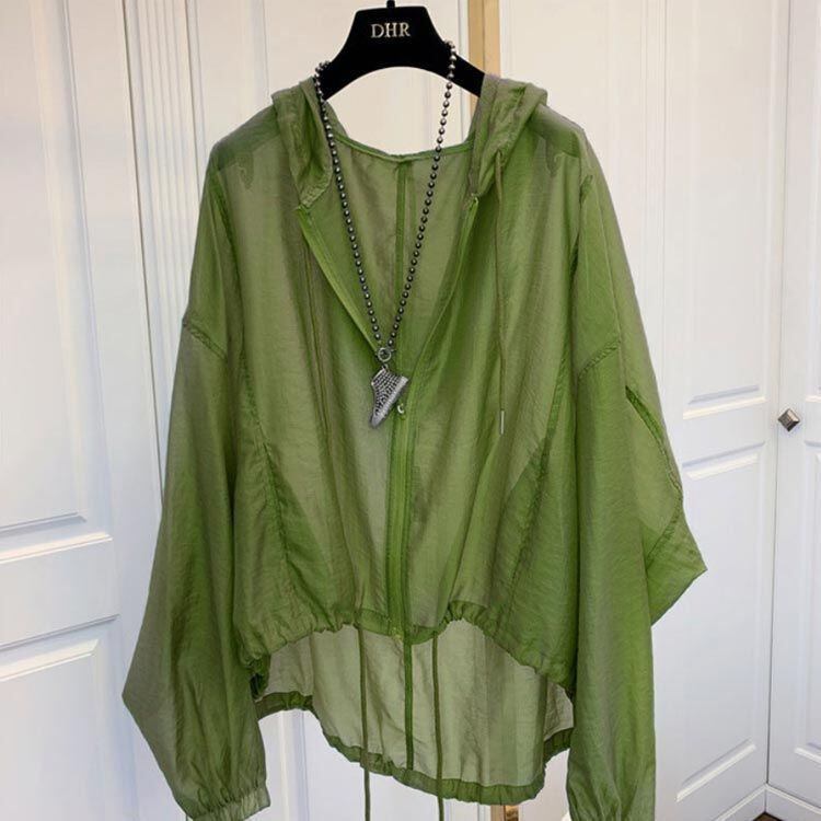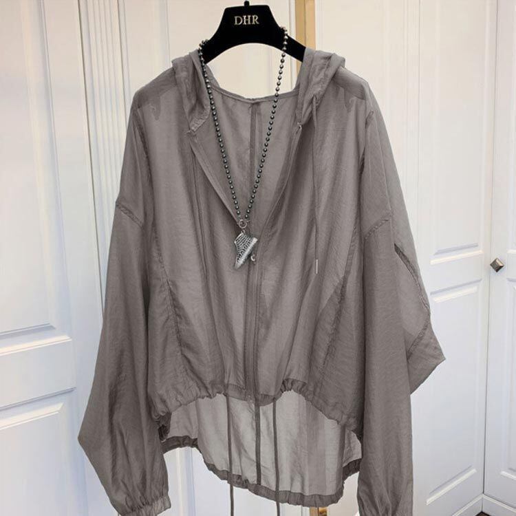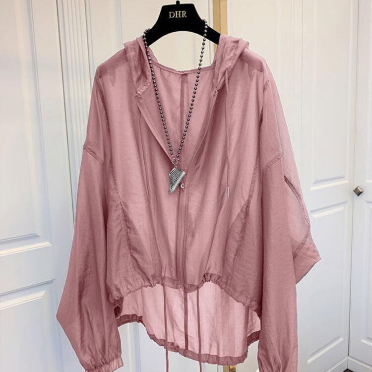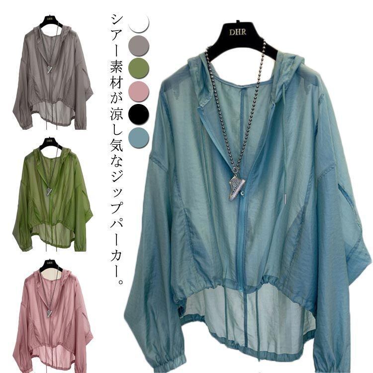 新品 シアー パーカー uvカット レディース uv パーカー ジップアップ 春夏 UVカット 長袖 フード付き 軽い サマーパーカー 羽織り 紫外線対策 薄手 アウター ゆったり 無地 ライトア kkkezg