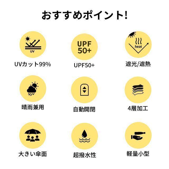 【UVカット99%&UPF50+】遮光遮熱コーティングが施され、光を通さずUVカットしてくれて紫外線遮蔽率99%以上、UPF50+に達成。晴雨兼用で季節を問わず、年中通して使える折り畳み傘です。