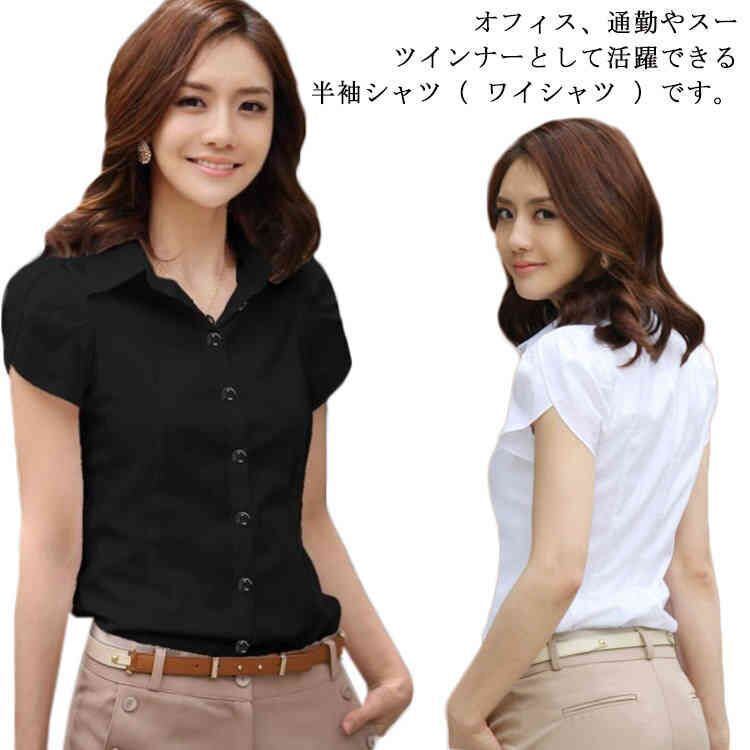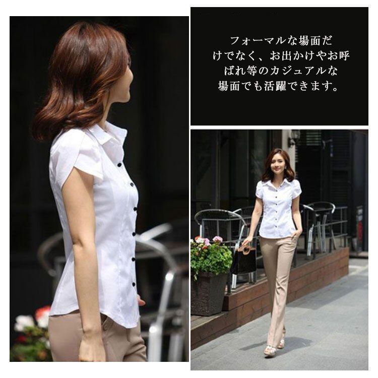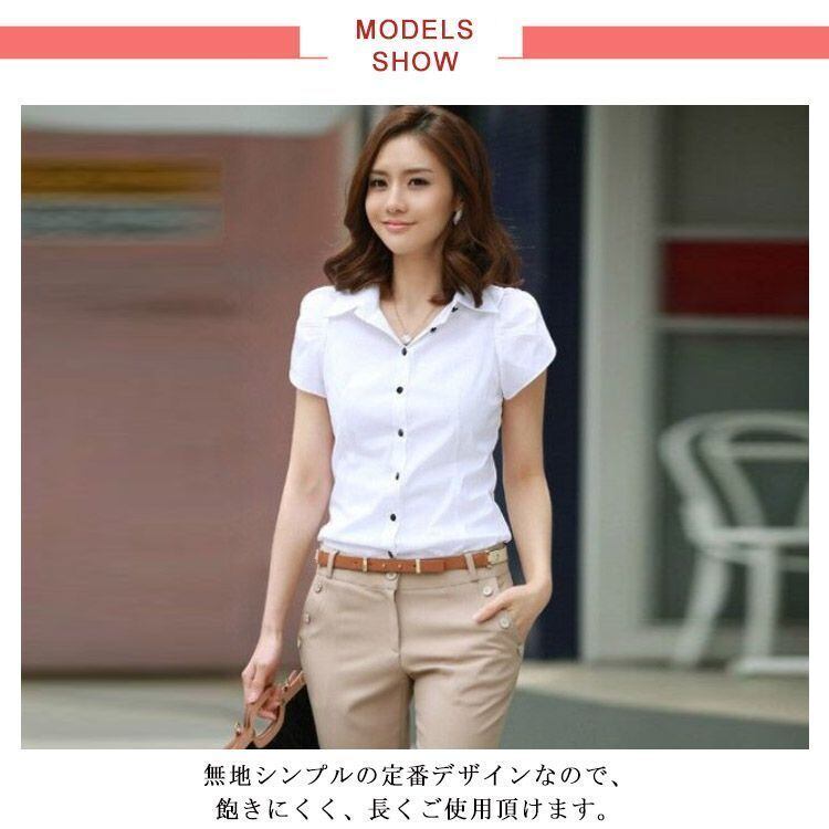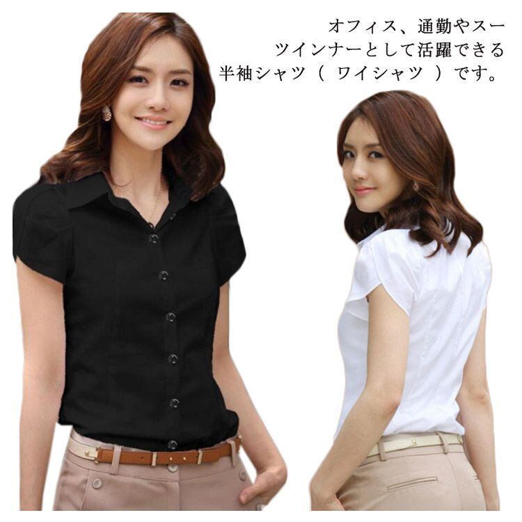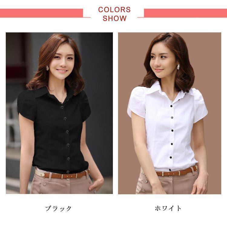 新品 オフィス パフ袖 ブラウス 通勤 チューリップ袖 レディース シャツ レディース OL カジュアル 白シャツ チューリップ袖 トップス フォーマル 半袖 ワイシャツ パフスリーブ 制服 無地 フレ kkkavf