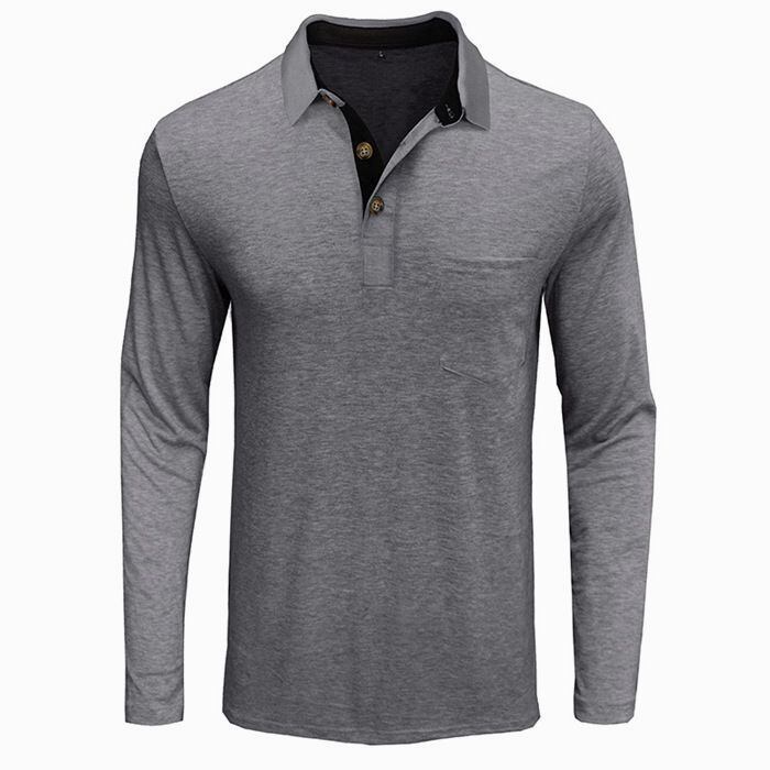 新品 メンズポロシャツ 長袖 シャツ 無地 ゴルフシャツ 長袖ポロシャツ ポロ トップス 胸ポケット付き 通勤 通学 おしゃれ kkkklt