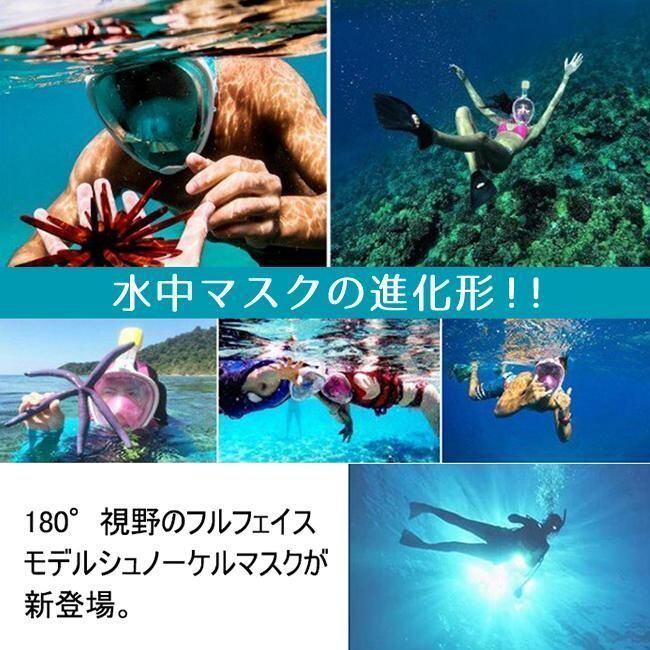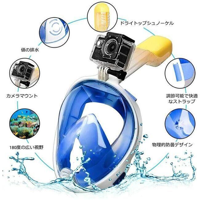 新品 シュノーケルマスク フルフェイス型 潜水 マスク マウント付き 海水浴 撮影 ゴーグル 水中メガネ 男女兼用 広角180°浸水防止 曇り防止 子供 大人 kkkqnm