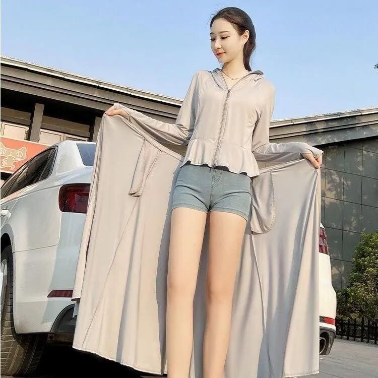 新品 薄手 パーカー ラッシュパーカー フード付き 接触冷感 ロングコート UVカット 体型カバー レディース 紫外線対策 ラッシュガード ジップアップ ロングパーカー 全身保護 ワンピース型 長袖 ひんや kkkiob