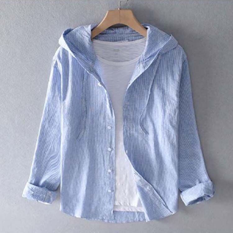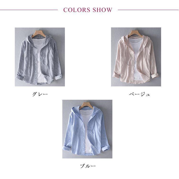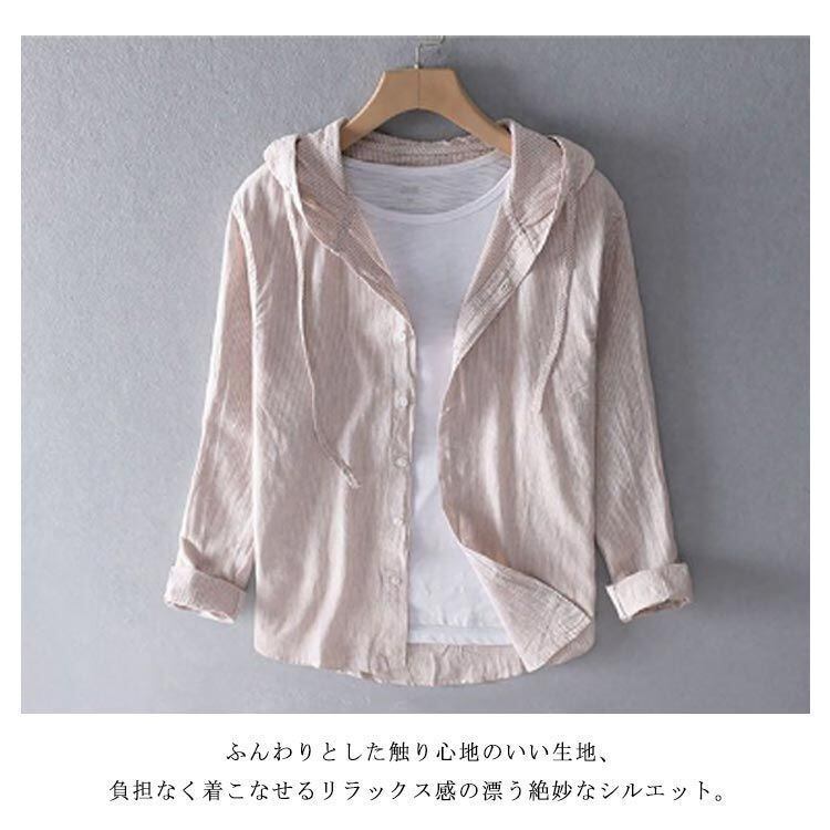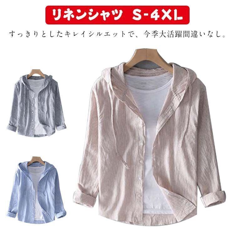 新品 フード付きパーカー 夏用 リネンシャツ リネンTシャツ 長袖パーカー パーカー メンズ 前開き 薄手 夏 春夏 麻 綿麻 シンプル 薄手 涼しい 無地 カジュアル 青 kkkktx