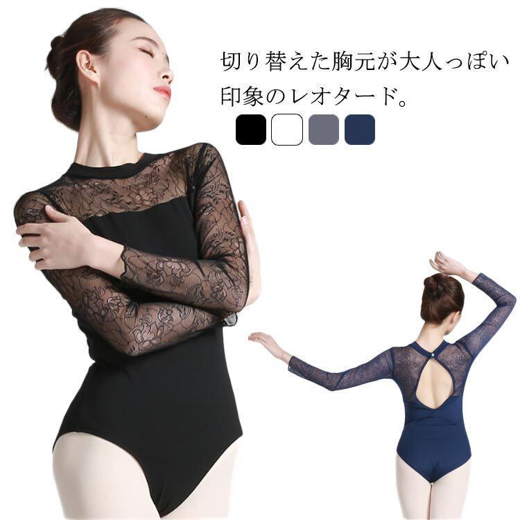 新品 バレエ レオタード レース 切り替え 長袖 バレエレオタード クルーネック 大人用 ジュニア スカートなしレオタード 花柄レース 制服レオタード シンプル おしゃれ ストレッチ 伸縮 レッスン シニア kkkfpn