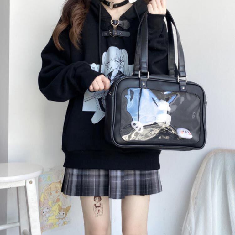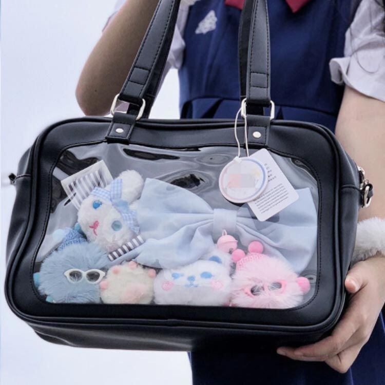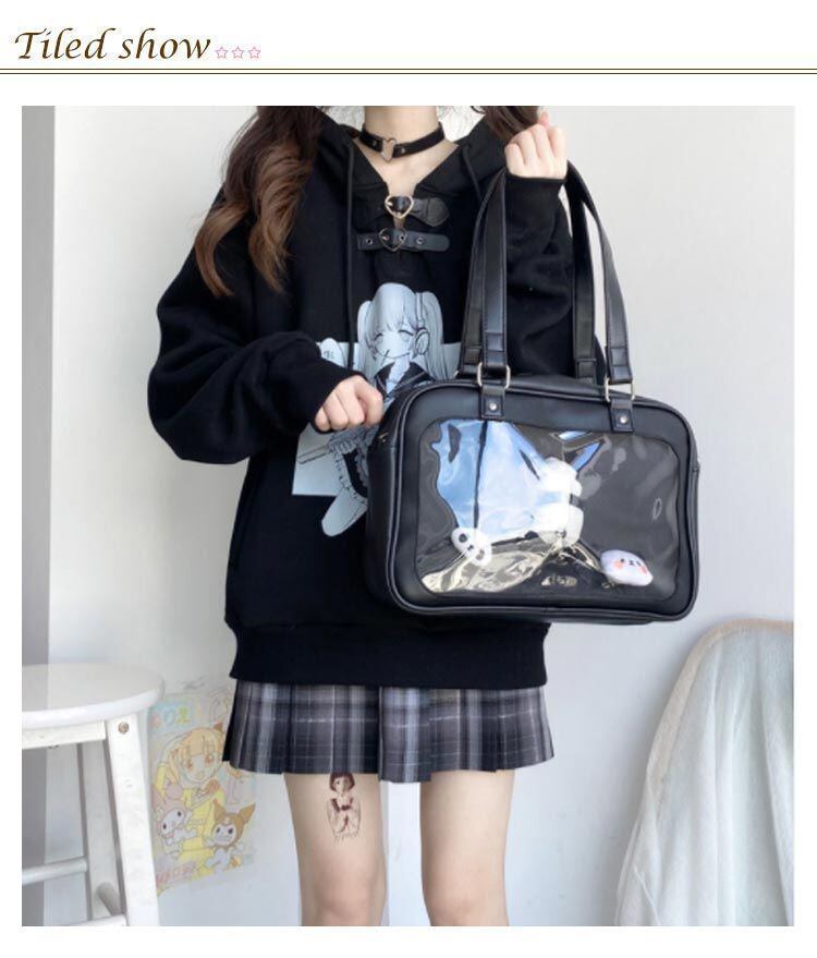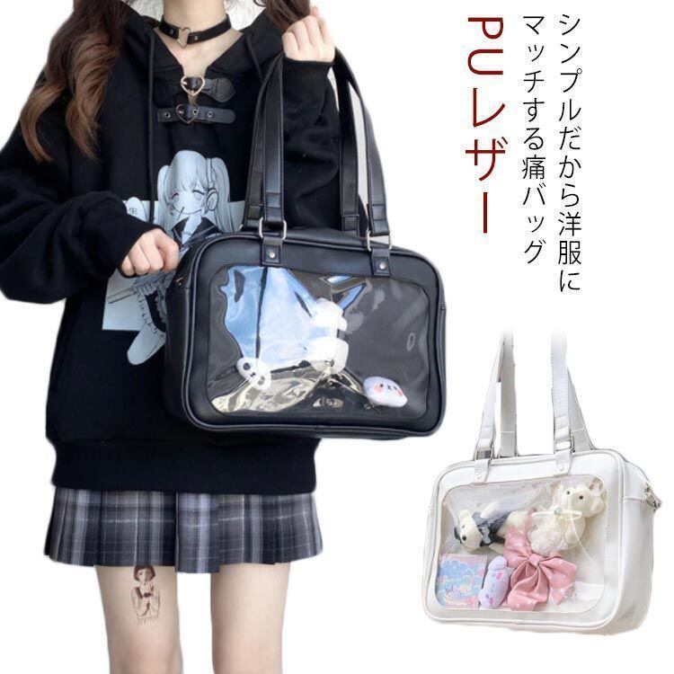 新品 痛バッグ a4 トートバッグ クリアバッグ 大容量 自立 ビニール ポケット 缶バッジ PUレザー 軽量 メッシュボード付き 無地 かわいい シンプル 痛バ ガールズ トート デイバック 子供 kkkdcu