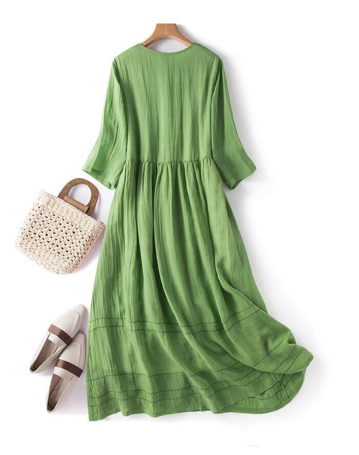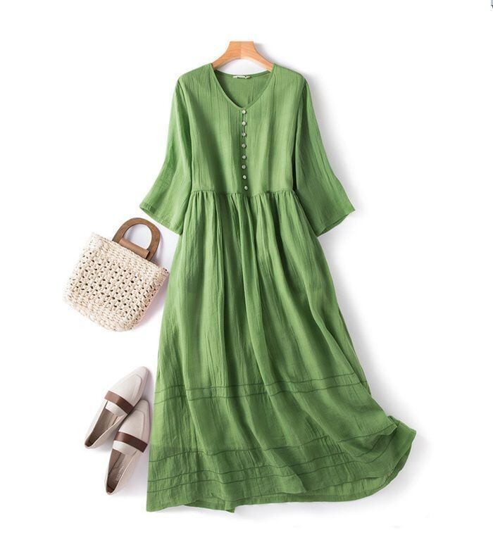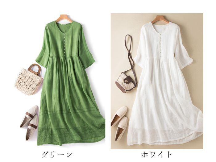 新品 ワンピース レディース 購入OK綿麻風 五分袖 半袖 ロング丈 ロングワンピース Vネック リネン混 夏 無地 カジュアル 体型カバー きれいめ 通勤 OL シンプル ゆったり おしゃれ kkkvoe
