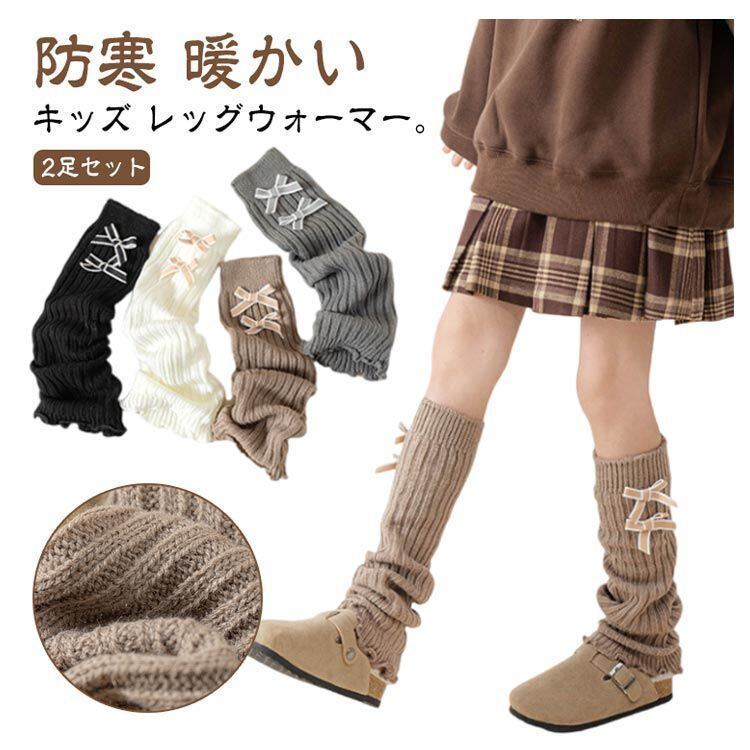 新品 レッグウォーマー 温活 キッズ 女の子 指なし 靴下 ハイソックス 防寒 暖かい 冷え対策 リブ編み ロング丈 子供用 ソックス 2足セット シンプル 無地 柔らかい 小学生 中学生 女児 ルーズソッ kkkyon