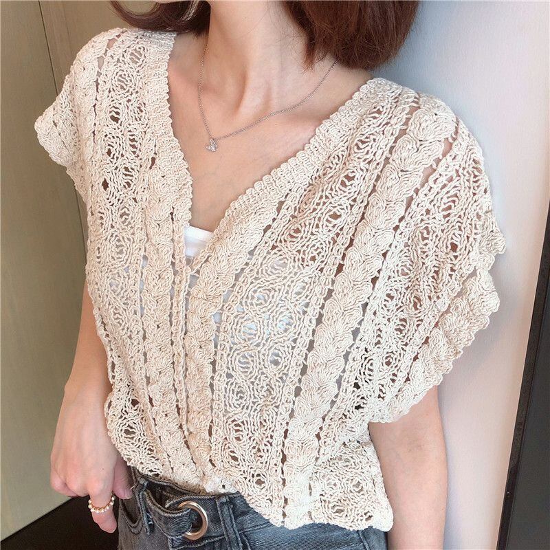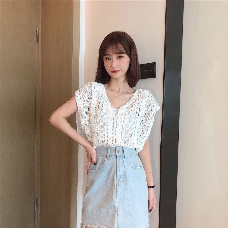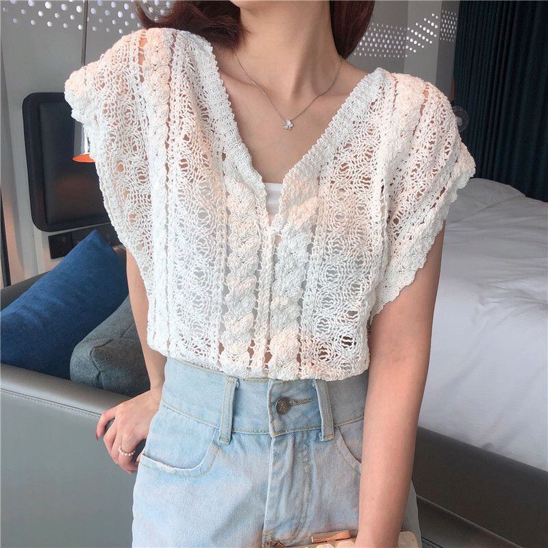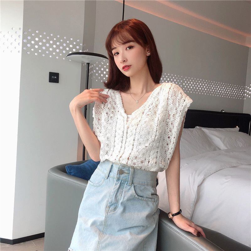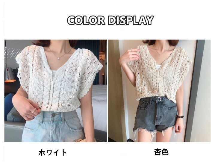新品 ベスト レディース トップス ブラウス Vネック レース 袖なし 透かし彫り 薄手 涼しい 上着 冷房対策 可愛い 通気性 おしゃれ 上品 大人 通勤 OL ゆったり 夏 シンプル 可愛い kkknrx