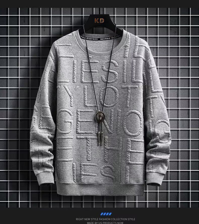 新品 トレーナー メンズ プルオーバー 英字 エンボス加工 長袖 Tシャツ スウェット ゆったり カップル おしゃれ カジュアル トップス 秋冬春 kkkdai