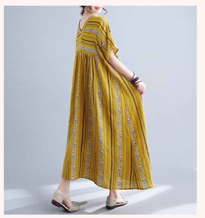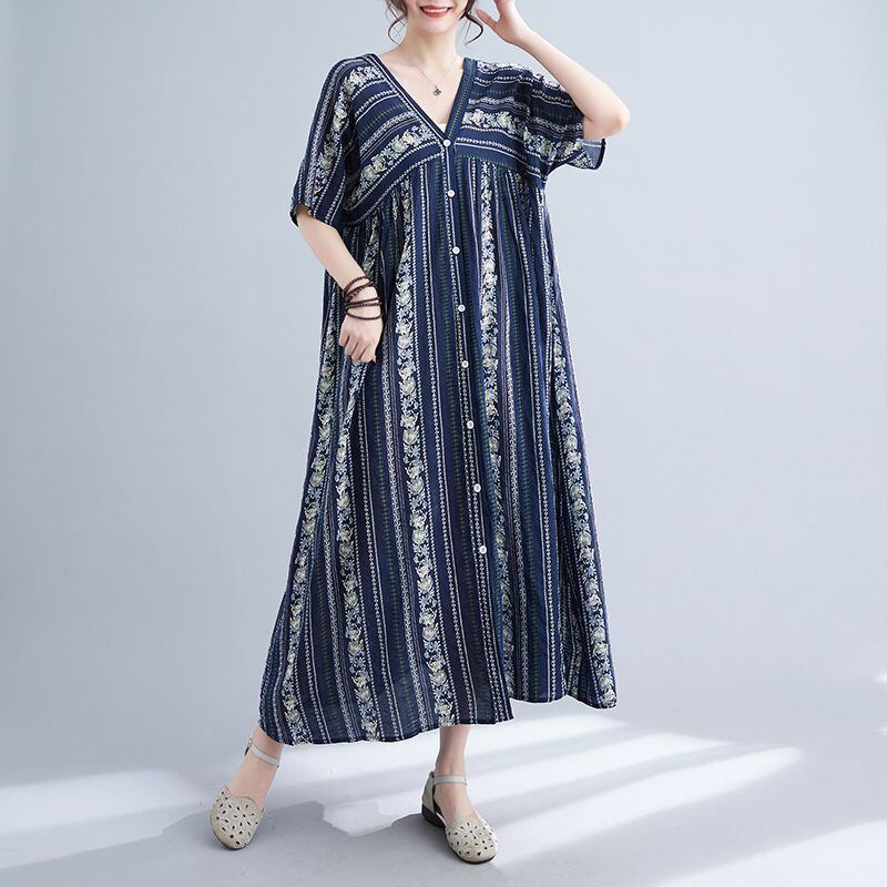 新品 ロングワンピース レディース ワンピース ロング丈 花柄 Vネック ゆったり 大きいサイズ シンプル カジュアル 大人 ハワイ 旅行 海 春 夏 kkksqu