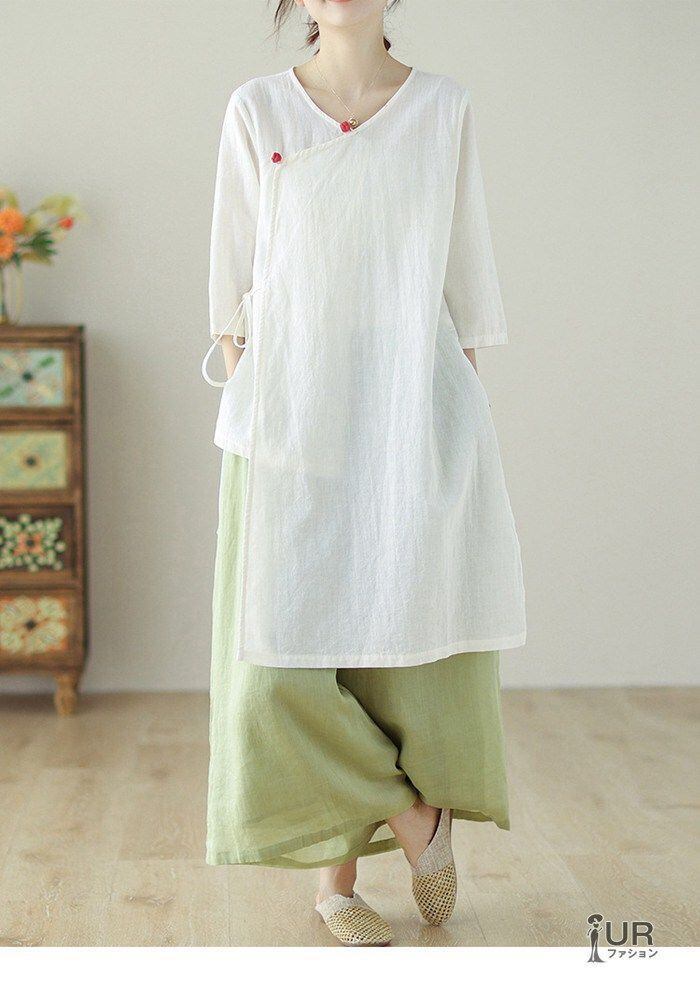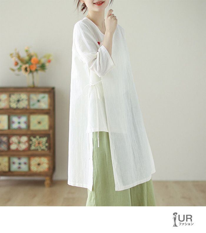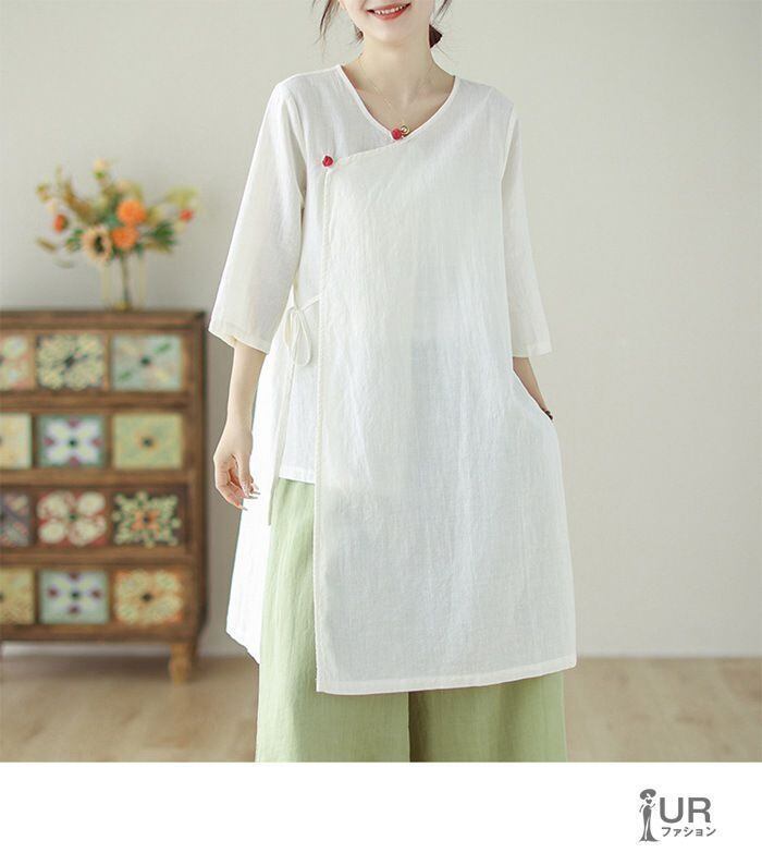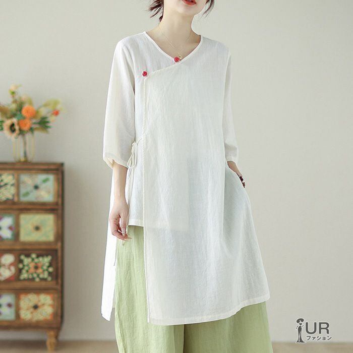 新品 シャツ レディース 七分袖 綿麻 リネン Vネック 夏 無地 ゆったり 着痩せ おしゃれ 通勤 通学 カジュアル 中華風 透ける kkktnw