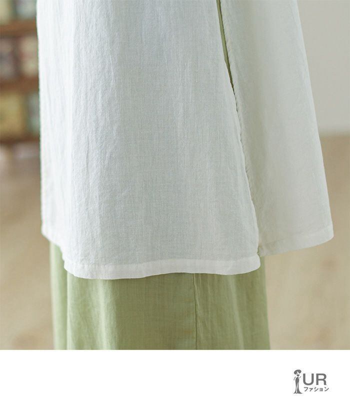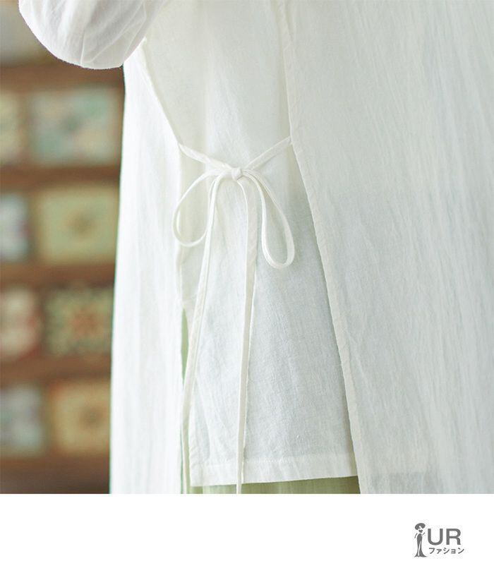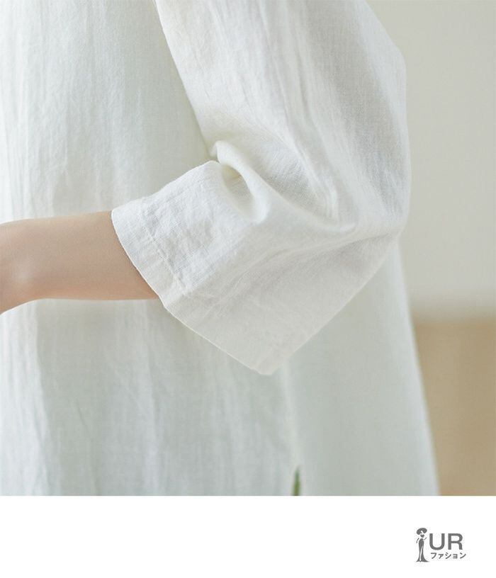 シャツ レディース 七分袖 綿麻 リネン Vネック 夏 無地 ゆったり 着痩せ おしゃれ 通勤 通学 カジュアル 中華風 透ける ファッション