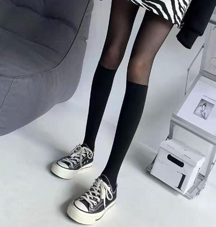 オールインワンのソックス風ストッキングで落ちないニーハイ!
