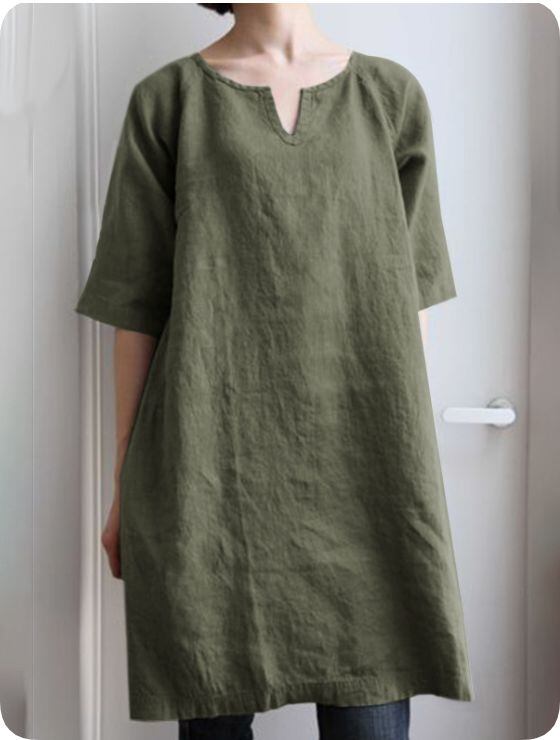 新品 トップス チュニック ワンピース ロングシャツ vネック 無地 5分袖 レディース ロング 綿麻混 リネン ポケット付き ドルマン袖 大きいサイズ 体型カバー 夏 kkkfoz