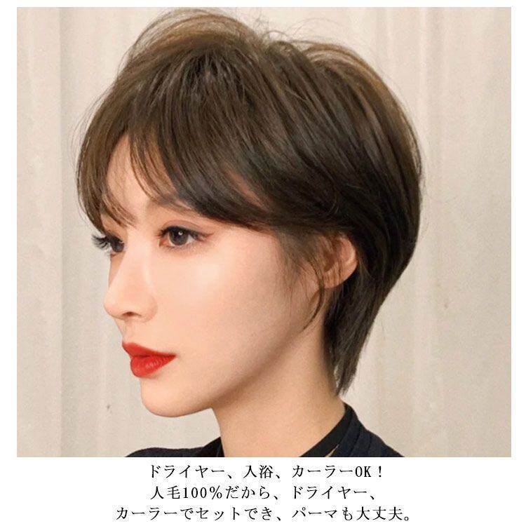 新品 人毛100% ショート 自然 自然色 黒 茶 モカ ミセス 20cm フルウィッグ カール パーマ レディース 女性用 ふんわり 全かつら 医療用ウィッグにも パーマ ウィッグ ブラック kkkxde